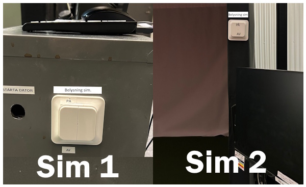 3. Släck takbelysningen i simulatorn. (vita knappen)